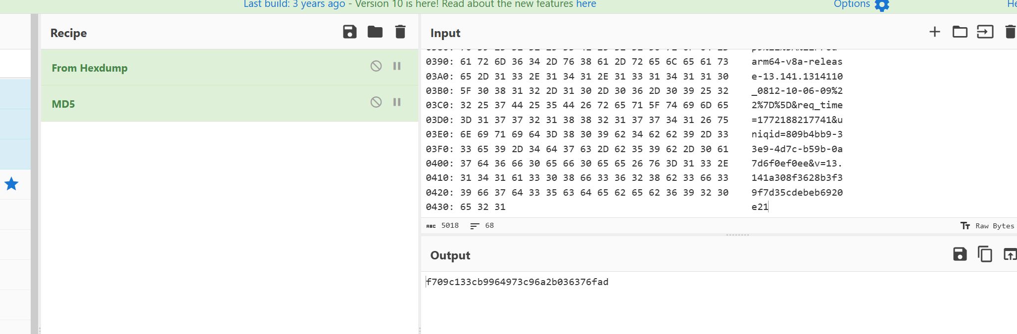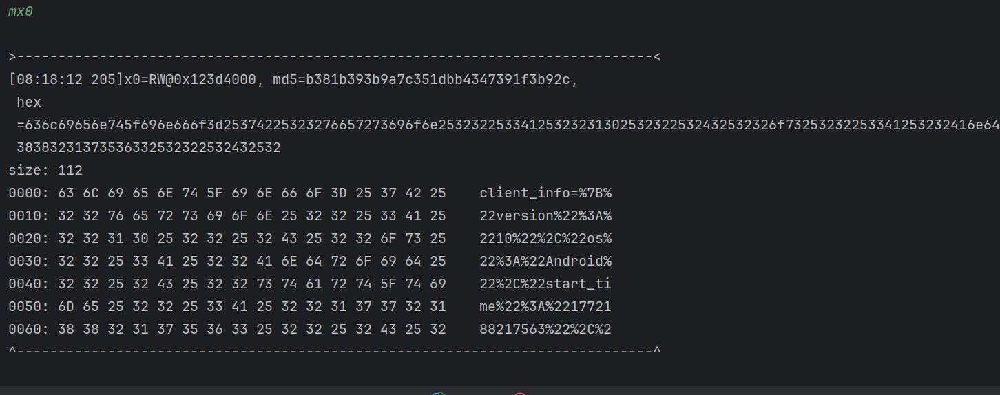 String arg1 = "client_info=%7B%22version%22%3A%2210%22%2C%22os%22%3A%22Android%22%2C%22start_time%22%3A%221772188217563%22%2C%22resume_time%22%3A%221772188217563%22%2C%22channel%22%3A%2228%22%2C%22model%22%3A%22google%7C%7CPixel+2%22%2C%22dzt%22%3A0%2C%22loc_per%22%3A0%2C%22uniqid%22%3A%22809b4bb9-33e9-4d7c-b59b-0a7d6f0ef0ee%22%2C%22oaid%22%3A%2200000000-0000-0000-0000-000000000000%22%2C%22oaid_honor%22%3A%2200000000-0000-0000-0000-000000000000%22%2C%22did%22%3A%22DUlRWq6jQRU_Glo4HL5qAwwsy7zpPrAM1600RFVsUldxNmpRUlVfR2xvNEhMNXFBd3dzeTd6cFByQU0xNjAwc2h1%22%2C%22tinker_id%22%3A%22Prod-arm64-v8a-release-13.141.1314110_0812-10-06-09%22%2C%22is_bg_req%22%3A0%2C%22network%22%3A%22wifi%22%2C%22operator%22%3A%22UNKNOWN%22%2C%22abi%22%3A1%7D&curidentity=0&data=%5B%7B%22action%22%3A%22app-active%22%2C%22time%22%3A1772188217717%2C%22p4%22%3A%22%22%2C%22p5%22%3A%221%22%2C%22p9%22%3A%22Prod-arm64-v8a-release-13.141.1314110_0812-10-06-09%22%7D%5D&req_time=1772188217741&uniqid=809b4bb9-33e9-4d7c-b59b-0a7d6f0ef0ee&v=13.141";