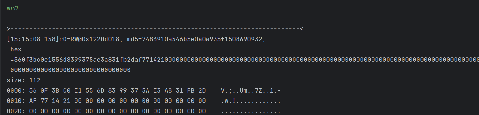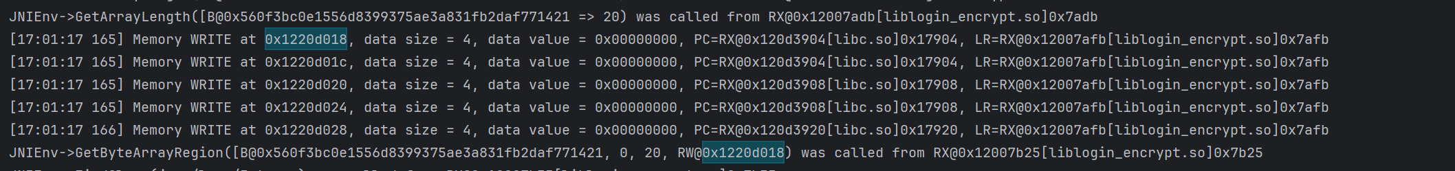 | emulator.traceWrite(0x1220d018, 0x1220d018 +0x13);