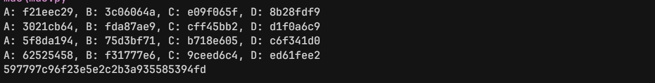 进来之后,就看到了 md5 的模数值,但是得到的结果并不是标准 md5 加密的结果,说明被魔改了,接下来就来看看是哪儿进行了魔改